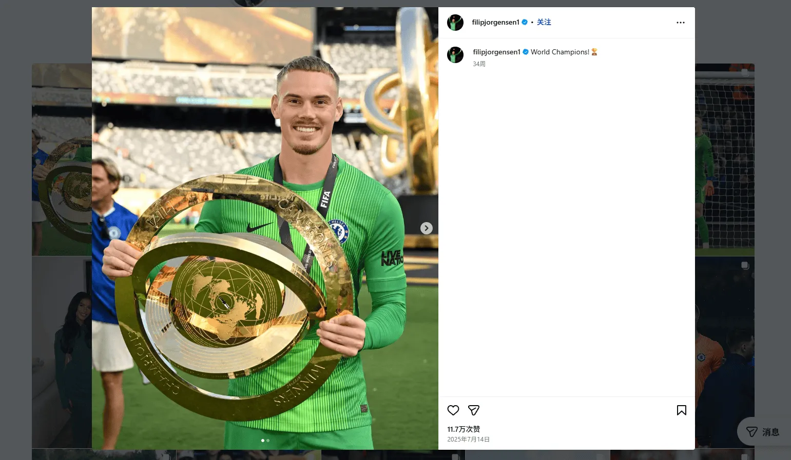 虎扑03月12日讯 在今天的欧冠比赛中,切尔西门将约根森上演超巨失误送礼,直接导致球队崩盘。在赛后,他个人社媒第一时间关闭了评论区。来源:Instagram 虎扑03月12日讯 在今天的欧冠比赛中,切尔西门将约根森上演超巨失误送礼,直接导致球队崩盘。在赛后,他个人社媒第一时间关闭了评论区。来源:Instagram...